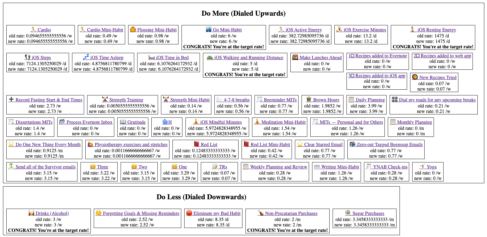 Yup. In fact, most of these are recently restarted goals that had been archived for a while while I took a step back to think about how I wanted to organize things. I have about 90 Beeminder goals (some of which are just test goals, others of which include meta goals, meaning there are multiple Beeminder goals to 1 real-life goal; my intermittent fasting goal, for example, uses 4 Beeminder goals.) Anyway, of those 90, about 50 have now been set up to autodial again and the other 40ish aren’t.